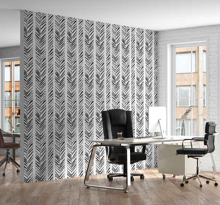 Référence: P6208Le papier peint bureau traits noirs est un véritable chef-d'œuvre graphique! Avec son motif à chevrons en noir et blanc, il apporte une touche d'élégance et de modernité à n'importe quelle pièce. Les lignes épurées et les contrastes saisissants créent un effet visuel saisissant qui ne manquera pas de captiver tous les regards !