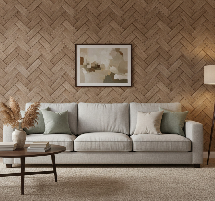 Papier peint salon effet bois tressé