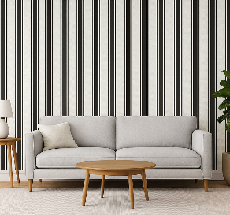Papier peint salon rayures vintage noir et blanc