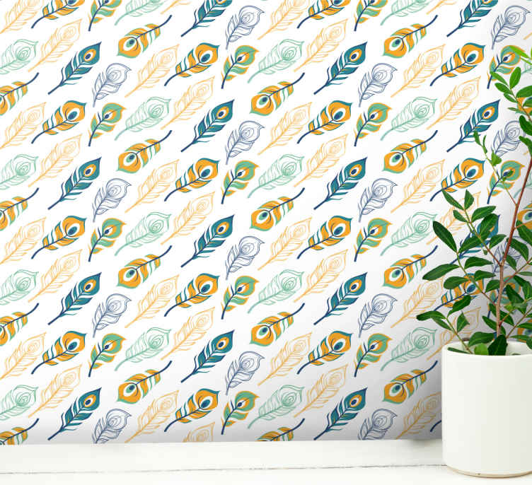 Référence: P1909Tapisserie chambre Petites plumes de paon