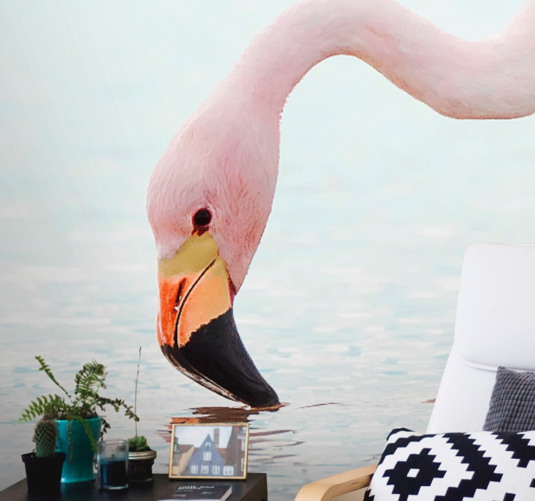 Référence: F9486Un flamant rose saisissant plonge sa tête avec grâce dans l'eau, créant un reflet captivant qui scintille à la surface. Les traits délicats et les couleurs vives de l'oiseau mettent en avant la beauté de la nature, créant une scène sereine et envoûtante.