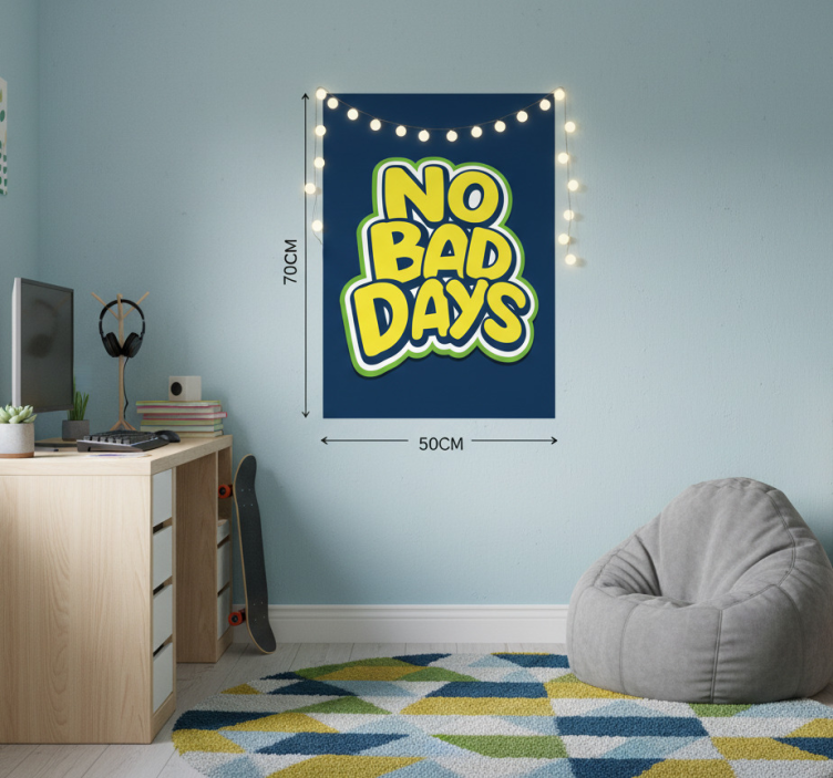 Le Poster chambre ado pas de jours mauvais est bien plus qu'un simple élément décoratif. Il inspire les jeunes à adopter une attitude positive et à voir le bon côté des choses. En l'accrochant dans leur espace personnel, vous leur offrez une source d'inspiration quotidienne qui les encourage à rêver grand et à rester motivés. C'est un choix idéal pour apporter une ambiance chaleureuse et dynamique dans la chambre de votre ado!