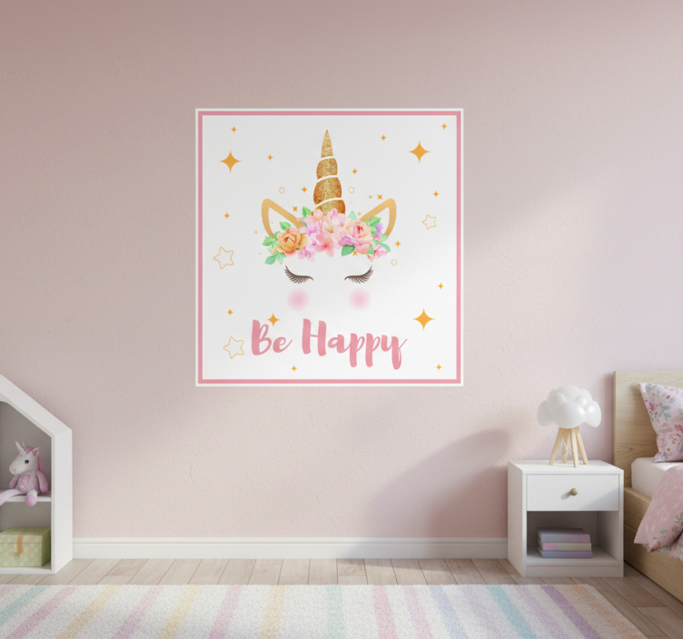Poster chambre enfant licorne avec phrase sois heureux