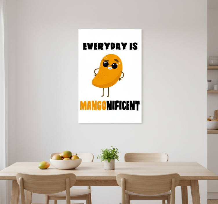 Référence: G626Apportez une touche de fraîcheur et d'humour à votre espace avec ce Poster cuisine citation amusante avec mangue. Son design éclatant, mettant en avant une mangue juteuse, invite à la bonne humeur et égaye instantanément vos murs. Ce poster est un véritable mélange de couleurs vives et de typographie ludique, idéal pour égayer votre cuisine et enrichir l'ambiance de votre maison.