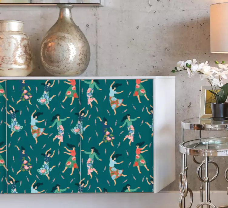 Découvrez un univers vibrant et animé avec notre Adhésif meuble motif de mouvement joyeux, un design captivant qui évoque l'énergie des femmes dansant en fête. Ce modèle coloré et dynamique transforme vos meubles en véritables œuvres d'art, apportant une touche abstraite et festive à votre intérieur.