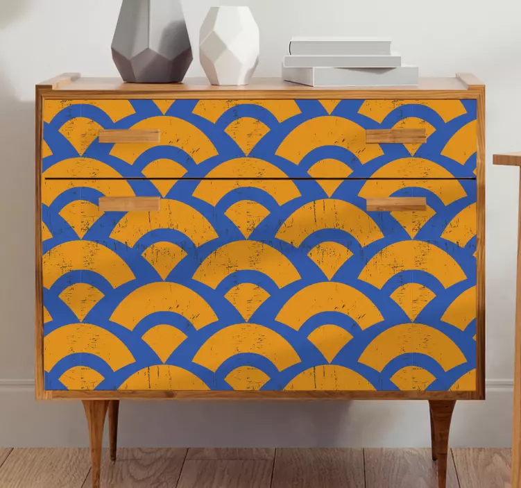 Découvrez notre Adhésif meuble motif vague, une véritable œuvre d'art pour vos intérieurs. Avec son design minimaliste et abstrait, ce modèle se distingue par ses arcs géométriques aux teintes de bleu et d'orange. Transformez vos meubles en un clin d'œil grâce à ce motif captivant qui apporte une touche de modernité à votre décoration !