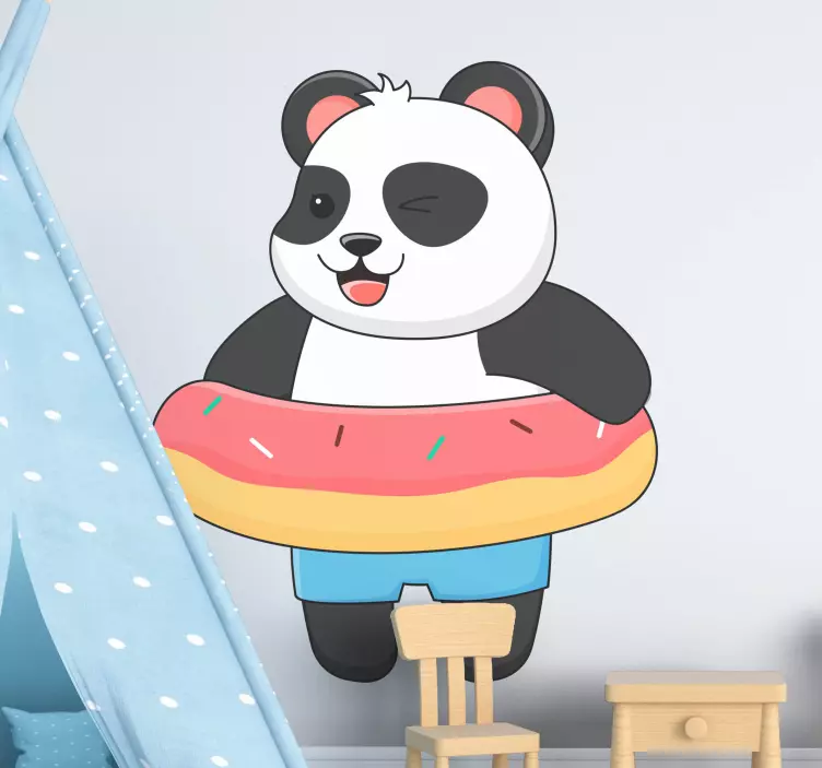 Apportez une touche de magie à la chambre de vos enfants avec notre autocollant animal de compagnie panda avec donut ! Ce magnifique design met en avant un panda espiègle et mignon, entouré d'un anneau de caoutchouc qui évoque le monde joyeux des décors de chambre. Ce dessin animé adorable transforme n'importe quel espace en un lieu d'amusement et de rire, parfait pour les enfants qui adorent les animaux.
