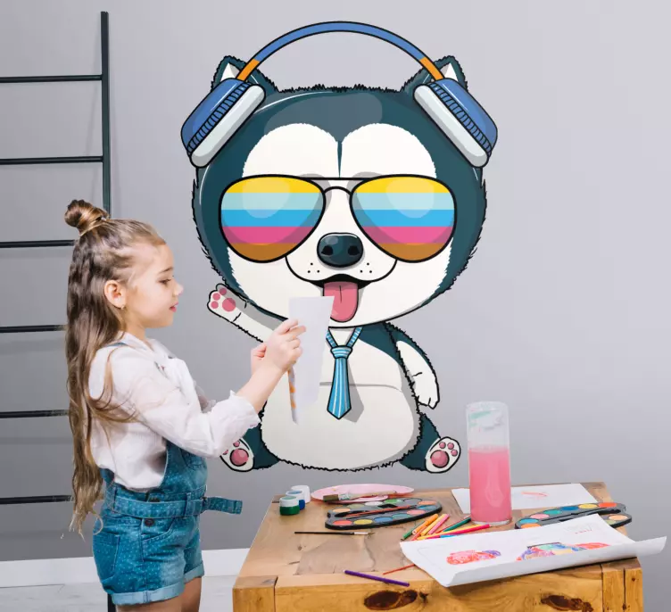 Découvrez notre autocollant animal de compagnie personnage sympa qui saura égayer votre espace ! Avec son design coloré, il met en avant un adorable chien espiègle portant des lunettes de soleil et des écouteurs. Ce décor mignon et drôle apporte une touche d'amusement à n'importe quelle pièce grâce à son style dessin animé captivant qui séduira petits et grands.