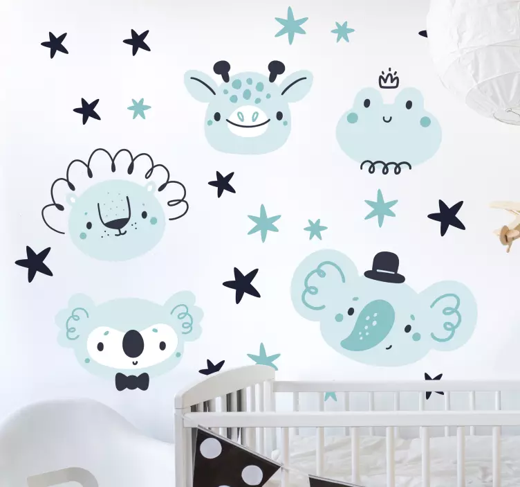 Découvrez notre Autocollant animal de compagnie visages d'animaux adorables, un design nordique et coloré qui illuminera l'espace de vos enfants ! Avec ses motifs d'animaux mignons en style dessin animé et ses étoiles espiègles, cet ensemble apportera une touche de joie et de gaieté à toute décoration. Laissez-vous séduire par ses teintes bleues qui évoquent la sérénité et la fraîcheur.