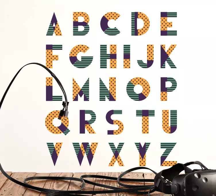 Apportez une touche urbaine à votre espace avec notre Sticker alphabet affichage de lettres alphabétiques, qui allie un design coloré et espiègle. Chaque lettre est habillée d'un motif géométrique, rendant cet article non seulement éducatif mais aussi visuellement captivant. Transformez vos murs en une exposition de créativité et d'apprentissage !