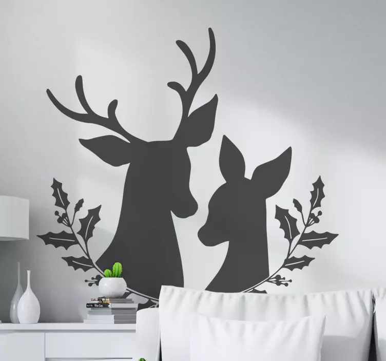 - Sticker autocollant de silhouette de deux cerfs dans un champ d'herbe