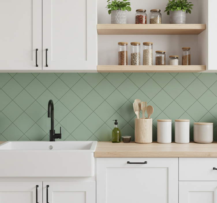 Sticker carrelage carrés verger sage