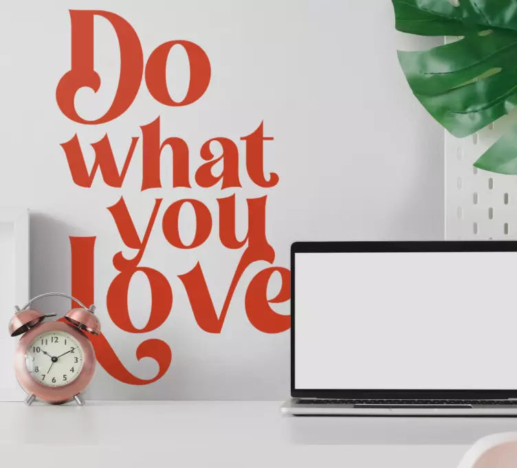 Le Sticker citation fais ce que tu aimes est l'élément parfait pour transformer votre intérieur en un lieu inspirant. Imaginez-vous entouré de mots qui vous motivent chaque jour. Ce sticker unique ne se contente pas de décorer, il crée une ambiance positive et dynamique qui stimule votre créativité et votre bonheur. Que ce soit dans votre salon, bureau ou chambre, ce sticker est une invitation à vivre pleinement vos passions !