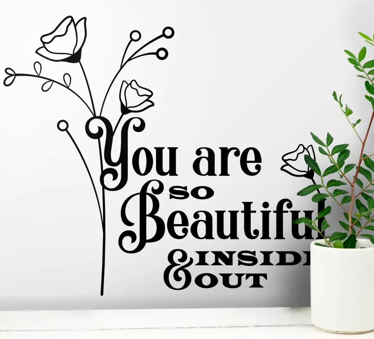 Découvrez notre Sticker citation vous êtes si belle à l'intérieur qui embellit votre espace tout en diffusant un message positif. Avec son design floral et inspirant, ce sticker allie beauté et élégance pour illuminer votre intérieur. Les fleurs délicates entourent un texte motivant, transformant ainsi chaque regard en une dose d'inspiration !