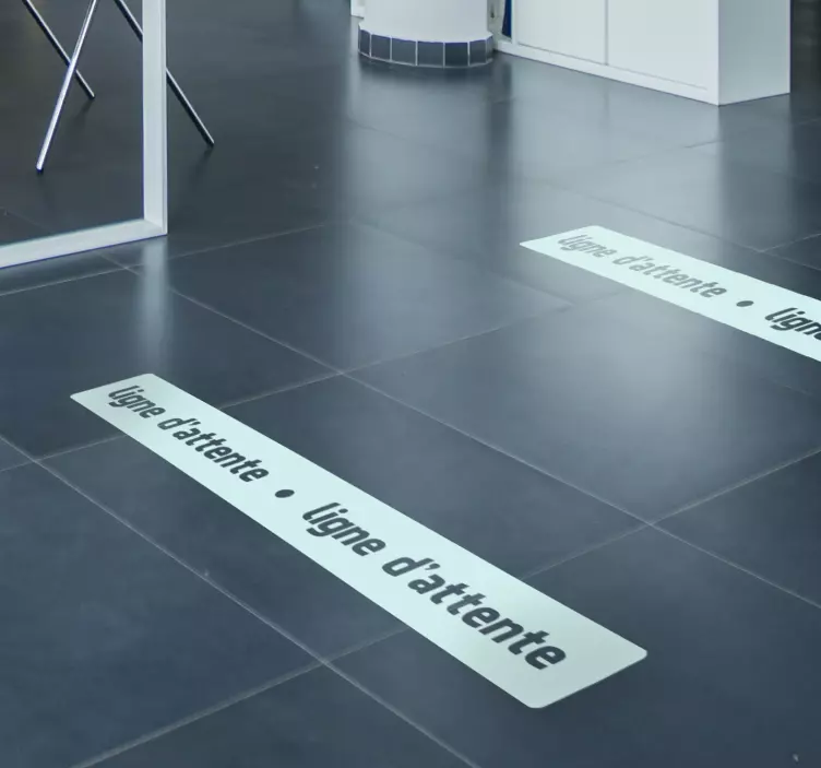 Le sticker de sol conçu avec du texte est un autocollant rectangulaire qui permet de diriger les gens sur place et de leur indiquer où attendre. Il peut être utilisé dans les lieux publics pour aider les personnes à garder une distance raisonnable entre elles.