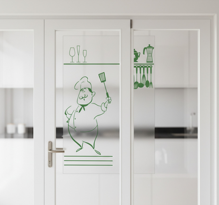 Référence: A53844Apportez une touche ludique et originale à votre intérieur avec notre Sticker fenêtre ensemble de chef cuisinier ! Ce design graphique vibrant illustre un chef cuisinier souriant, accompagné de ses ustensiles de cuisine emblématiques. Les couleurs éclatantes et la finition satinée de cet autocollant ajoutent une ambiance chaleureuse à votre espace, tout en minimisant les reflets indésirables. Fabriqué avec des matériaux de haute qualité, cet autocollant est à la fois résistant et facile à entretenir, vous permettant de profiter d'une décoration intemporelle pendant de nombreuses années.