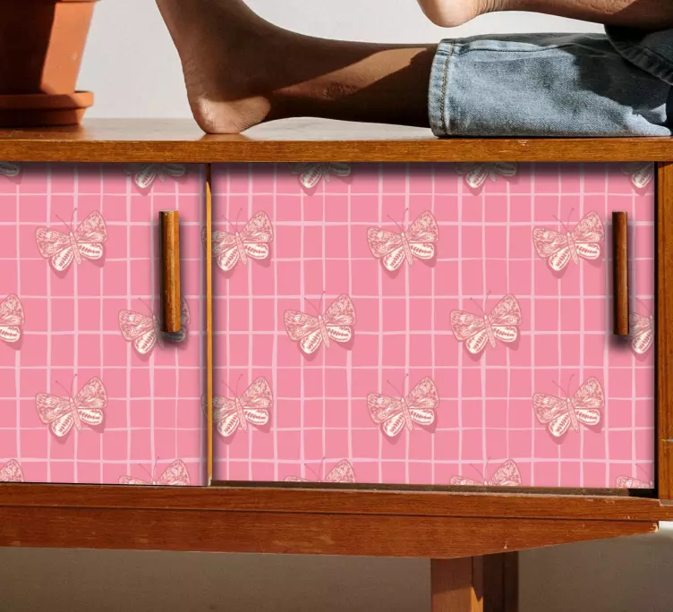 Ajoutez une touche de charme à votre intérieur avec notre Sticker frigo motif papillons roses. Ce design enchanteur met en avant des papillons délicats sur une grille à carreaux qui saura dynamiser vos meubles. Le rose doux de ce modèle décoratif apportera une ambiance chaleureuse et accueillante à votre cuisine ou à votre salon.