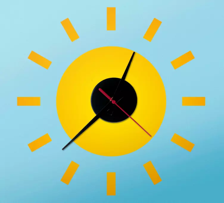 Découvrez notre Sticker horloge design soleil jaune, un autocollant à la fois élégant et moderne qui apporte une touche de lumière à votre intérieur. Son design graphique unique évoque un soleil radieux, symbolisant l'ensoleillement et le passage du temps. Avec ses teintes jaunes éclatantes, cet autocollant se transforme en véritable pièce décorative qui égaye vos murs tout en ajoutant une fonction pratique d'horloge.