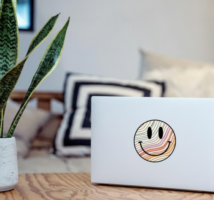 Sticker ordinateur visage souriant psychédélique