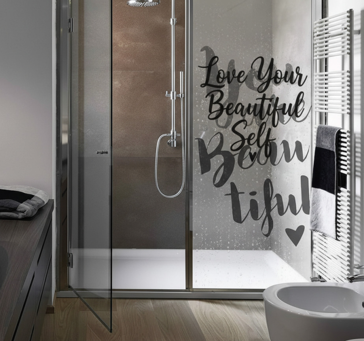 Référence: A54642Découvrez notre Sticker paroi de douche typographie amour de soi, un design graphique inspirant qui évoque la positivité et l'amour de soi. Avec des caractères élégants et une typographie moderne ce sticker ajoute une touche de sophistication à votre espace tout en promouvant un message fort et engageant.