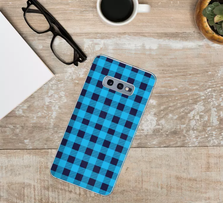 Sticker samsung motif à carreaux bleus
