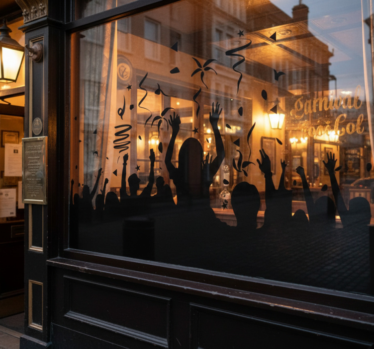 Sticker vitrine foule de carnaval festive