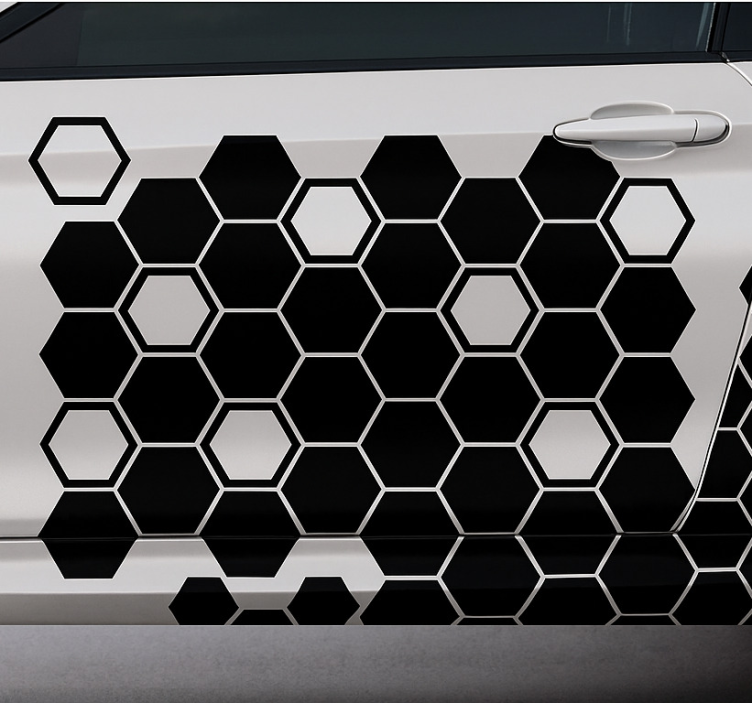 Référence: A53940Découvrez notre Sticker voiture motif en nid d'abeille hexagonal, un design graphique unique qui apporte une touche moderne et stylée à votre véhicule. Avec ses motifs hexagonaux inspirants, ce sticker saura attirer le regard et se démarquer sur la route. La finition satinée évite les reflets gênants tout en garantissant une excellente intensité de couleur. Ce produit est conçu pour résister aux intempéries, ce qui signifie que votre voiture sera toujours à la mode, peu importe le temps.