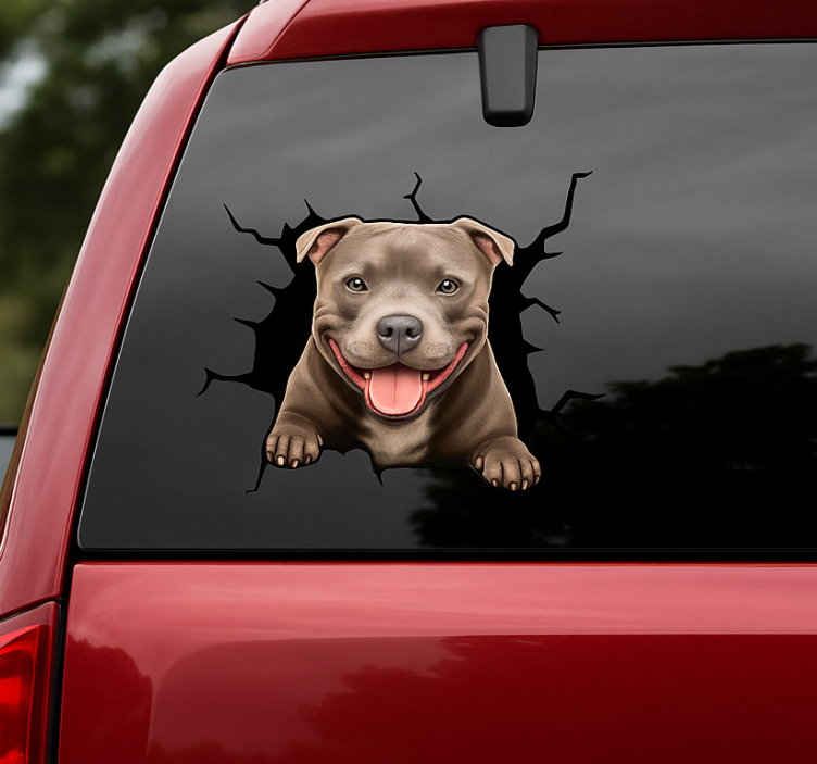 Sticker voiture pitbull souriant au sommet
