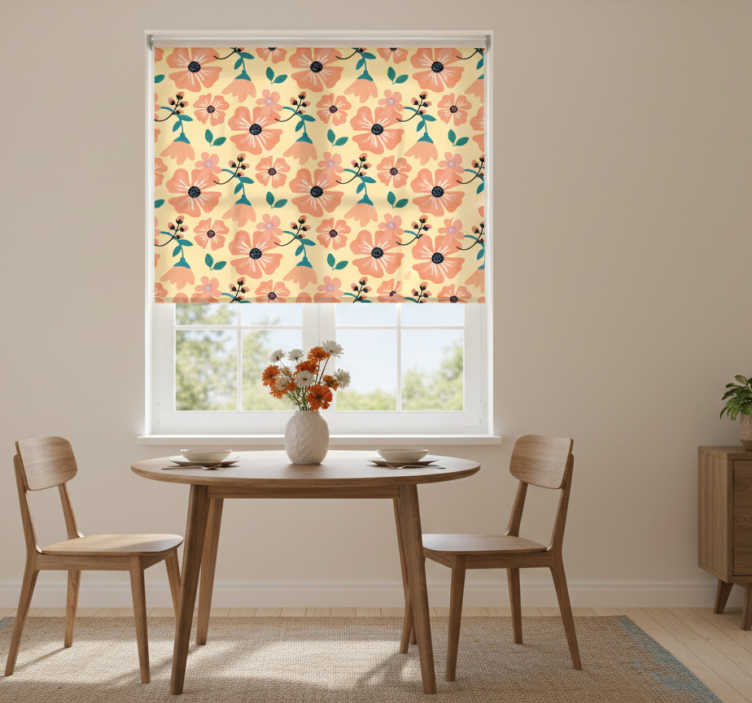 Store enrouleur salle à manger fleurs orange