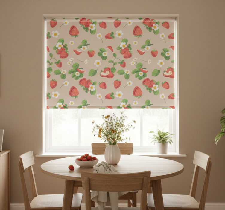 Référence: E6695Apportez une touche de fraîcheur à votre salle à manger avec notre Store enrouleur salle à manger fraises et fleurs. Ce design enchanteur, orné de motifs de fraises juteuses et de fleurs éclatantes, saura transformer votre espace en un lieu chaleureux et accueillant. Imaginez des repas en famille illuminés par la beauté de ce store, alliant à la fois charme et fonctionnalité pour embellir votre intérieur !