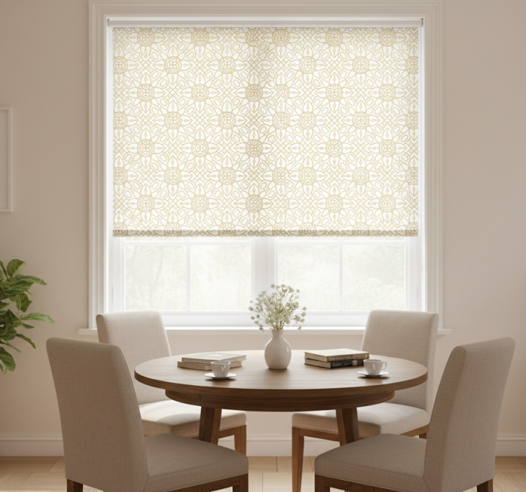 Store enrouleur salle à manger motif floral blanc moderne