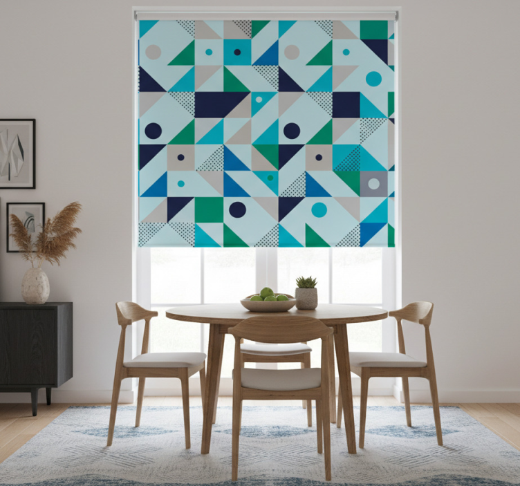 Store enrouleur salle à manger patchwork bleu