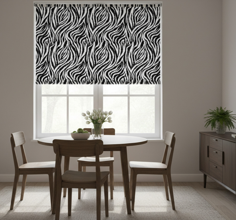 Store enrouleur salle à manger zèbre noir et blanc classique