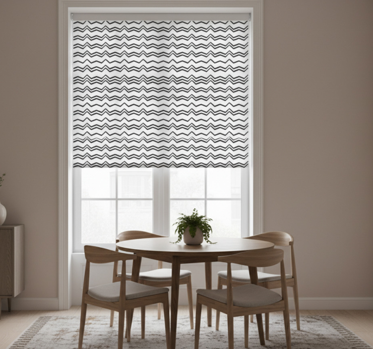 Store enrouleur salle à manger zigzag noir et blanc