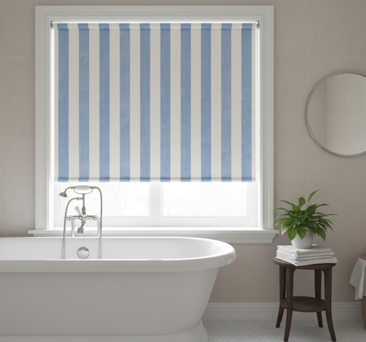 Toile fenêtre bleu rayures bleues et blanches