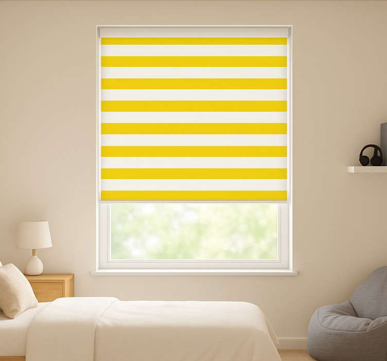 Référence: E5880Offrez à la chambre de votre adolescent une touche moderne et joyeuse avec notre Toile fenêtre chambre adolescent rayures jaunes et blanches. Ce design captivant, alliant des lignes vives et des couleurs éclatantes, réveille l'espace tout en apportant une atmosphère chaleureuse. Les rayures jaunes et blanches apportent une dynamique unique, créant un environnement inspirant et agréable à vivre.