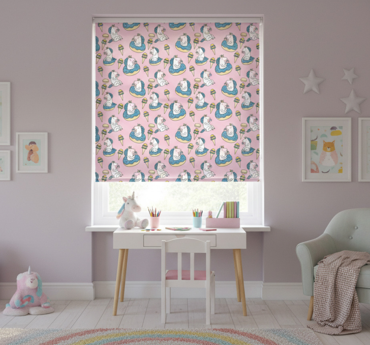 Toile fenêtre chambre enfant licornes et cornets de glace