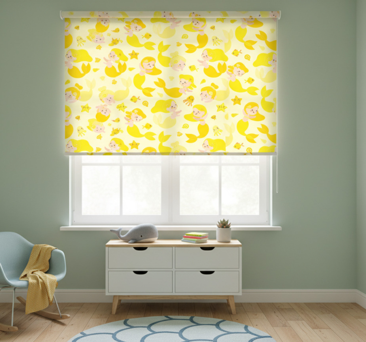 Toile fenêtre chambre enfant sirène jaune souriante