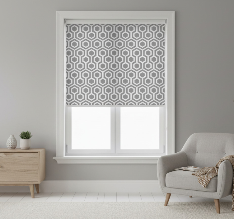Toile fenêtre gris motif hexagonal gris
