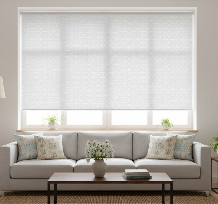 Toile fenêtre moderne losanges et hexagones gris