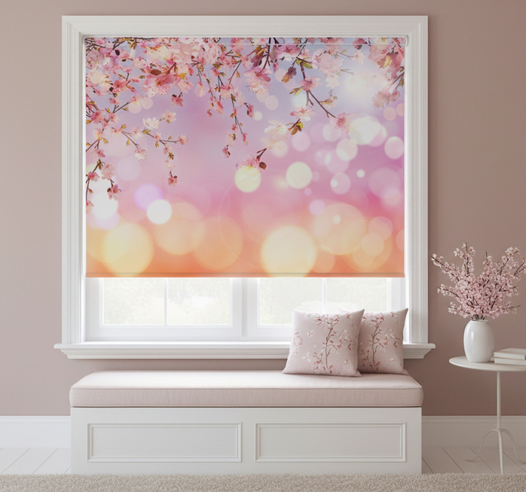 Toile fenêtre rose fleur de cerisier 3d