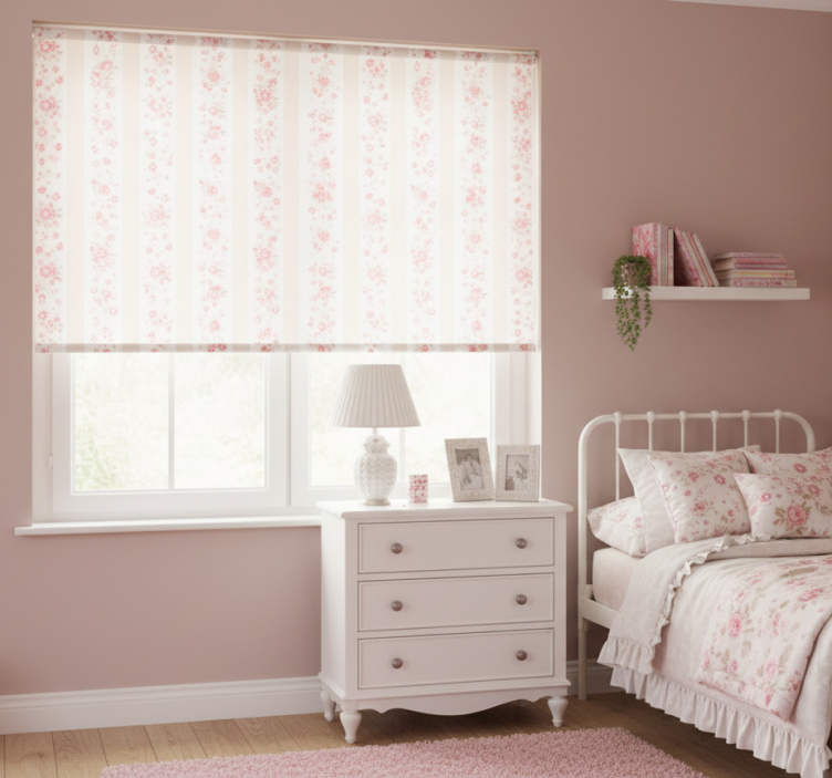 Toile fenêtre rose rayures florales rétro
