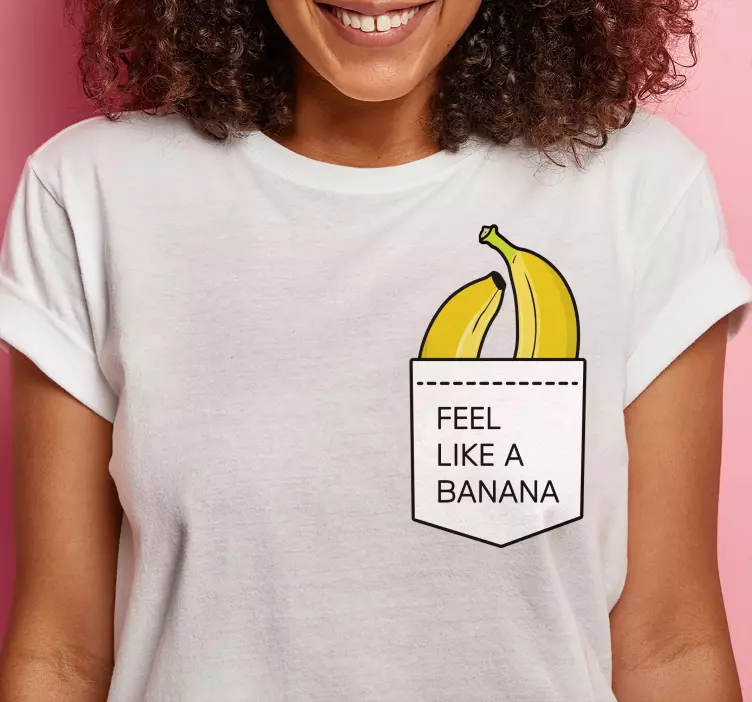 Référence: T4147Ce design présente des bananes vibrantes qui dépassent d'une poche avec le texte 'Feel Like A Banana.' L'imagerie ludique transmet une ambiance légère et joyeuse, parfaite pour une tenue décontractée. Idéal pour ceux qui aiment les déclarations de mode amusantes et originales.