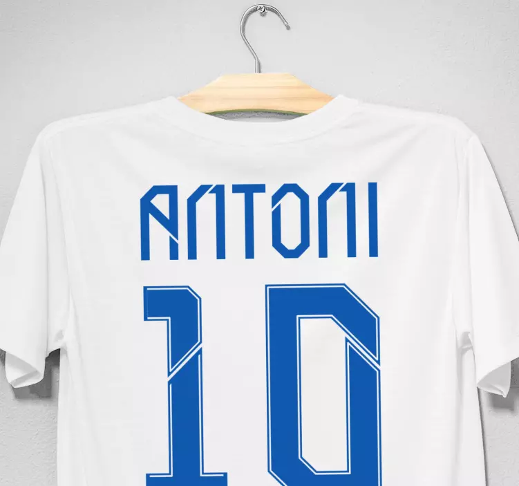 Référence: T4762Ce design met en avant un nom et un numéro personnalisés dans un style saisissant. La typographie audacieuse souligne le nom 'Antoni' ainsi que le numéro '10', créant un look dynamique et accrocheur adapté aux passionnés de sport.