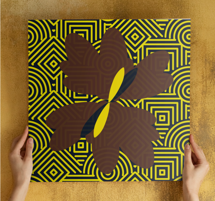 Référence: Q7834Ce design présente un motif floral stylisé positionné au centre contre un fond géométrique vibrant. La combinaison de formes organiques et de motifs complexes crée une expérience visuelle dynamique, mettant en avant la beauté de la nature entrelacée avec des éléments de design audacieux.