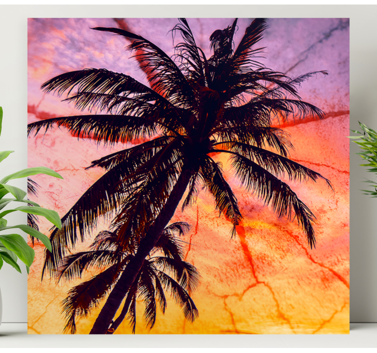 Référence: Q6828Une vue frappante de palmiers en silhouette capture l'essence d'un coucher de soleil paisible. Les détails complexes des feuilles se détachent sur un fond vibrant, mettant en valeur la beauté de la nature. Cette image captivante évoque des sentiments de détente et de chaleur, invitant à imaginer une "serene tropical escape".