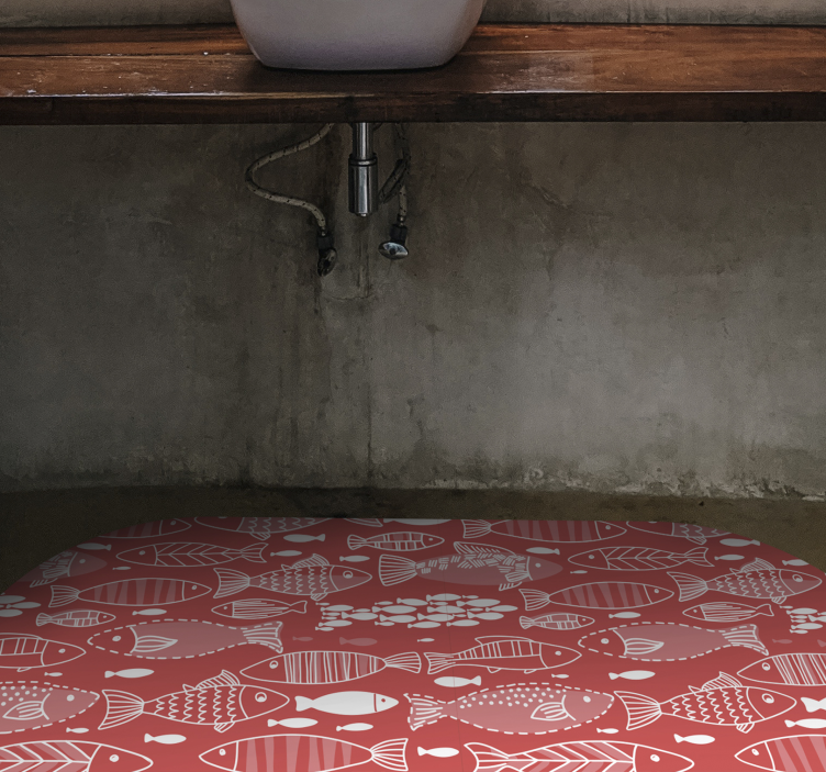 Découvrez notre Tapis vinyle animal décor à motifs de poissons, une pièce unique qui évoque la vie marine avec son design stylisé. Les motifs de poissons en rouge et blanc apportent une touche aquatique à votre intérieur, transformant chaque espace en un véritable havre de paix marin.